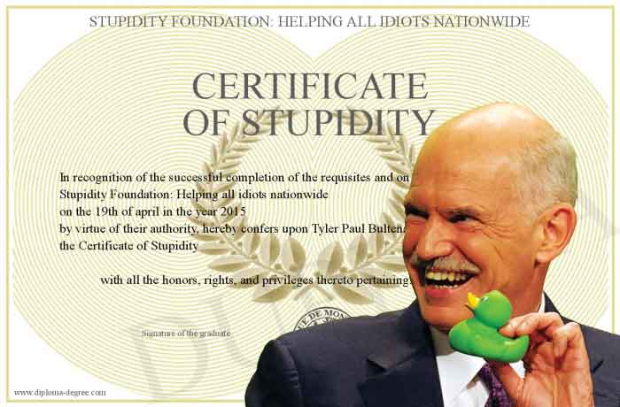 700-58797-Certificate+of+Stupidity Published 16 Νοεμβρίου, 2017 at 700 × 460 in «Eφ’ όλης της ύλης» αμετανόητος και χωρίς ντροπή ο Γ. Παπανδρέου