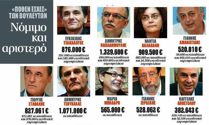 ΜΟΝΟΝ 15 ΒΟΥΛΕΥΤΕΣ ΤΟΥ ΣΥΡΙΖΑ ΕΧΟΥΝ 476 ΔΙΑΜΕΡΙΣΜΑΤΑ ΚΑΙ 50 ΕΚΑΤ. ΕΥΡΩ ΚΑΤΑΘΕΣΕΙΣ.