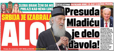 Ο Σέρβος Πατριάρχης Ειρηναίος, δήλωσε στην εφημερίδα ‘Alo’ ότι η ποινή που επιβλήθηκε στον Ράτκο Μλάντιτς από το Διεθνές Δικαστήριο της Χάγης είναι ‘έργο του διαβόλου’.