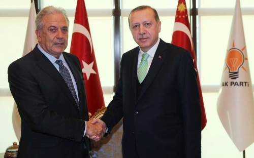 Συνάντηση με τον Τούρκο πρόεδροΤαγίπ Ερντογάν είχε σήμερα στην Αγκυρα ο Ευρωπαίος Επίτροπος Μετανάστευσης, Δημήτρης Αβραμόπουλος στο πλαίσιο επίσκεψής του στη γειτονική χώρα προκειμένου να μετάσχει στη όγδοη Σύνοδο Κορυφής του Βοσπόρου στην Κωνσταντινούπολη.