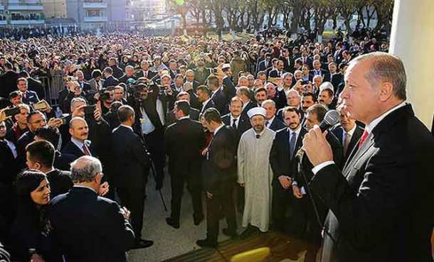 Τα συνθήματα που φώναζαν οι συγκεντρωμένοι ήταν «Είσαι ο ηγέτης μας», «Μαζί σου με τον Αλλάχ» και διάφορα άλλα που δείχνουν και το κλίμα που καλλιέργησε η επίσκεψη αυτή σε μια τόσο ευαίσθητη περιοχή όπου επί ένα εξάμηνο δέχεται συνεχώς προσβολές από όλη σχεδόν την τουρκική ηγεσία, με την σκανδαλώδη αδράνεια της ελληνικής πλευράς.
