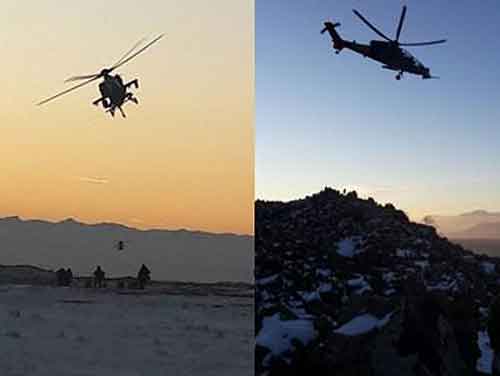Παρά τις δυσμενείς καιρικές συνθήκες στο βουνό, Τούρκοι κομάντος φέρονται να διεξάγουν αεροπορικές πτήσεις με στρατιωτικά ελικόπτερα και να υλοποιούν επιχειρήσεις εντοπισμού και εξουδετέρωσης στα χειμωνιάτικα καταφύγια των μαχητών, αναφέρει και η εφημερίδα της Μιλλιέτ της Τουρκίας.