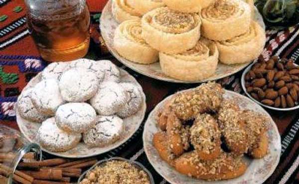 Φαγιάντσες, μπακίρια, ταβάδες,ζάχαρη, πετιμέζι, μέλι, καρύδια,κάσταν, αμύγδαλα, όλα αραδιασμένα κι έτοιμα να υποδεχτούν τα σαραγλί, τους μπακλαβάδες, τα φοινίκια, τους κουραμπιέδες, τα σεκέρ λουκούμια και τα κανταίφια.