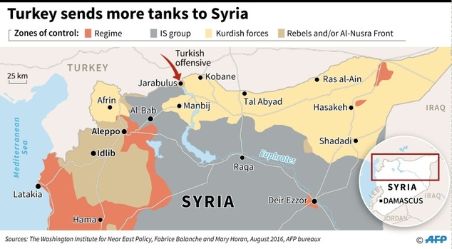 Ένας δημοσιογράφος του Reuters στη βόρεια Συριακή πόλη Αζάζ, που βρίσκεται υπό τον έλεγχο των ανταρτών του ελεύθερου Συριακού Στρατού, άκουγε τις εκρήξεις πυροβολικού στην περιοχή.