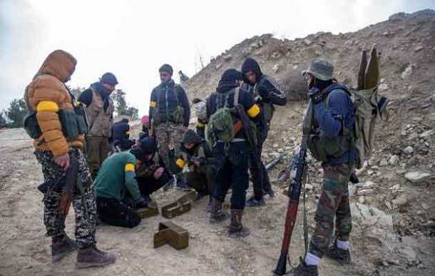με τα κίτρινα περιβραχιόνια, ισλαμιστές τουρκόφιλοι μισθοφόροι στο μέτωπο της Εφρίν.