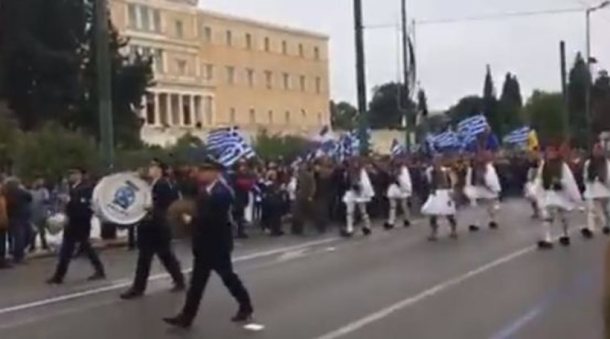 Αρκετοί Έλληνες πολίτες που βρίσκονταν ήδη στην πλατεία Συντάγματος εν όψει του συλλαλητηρίου για τη Μακεδονία καταχειροκρότησαν τους Εύζωνες της Προεδρικής Φρουράς, ενώ η μπάντα έπαιζε το «Μακεδονία Ξακουστή».