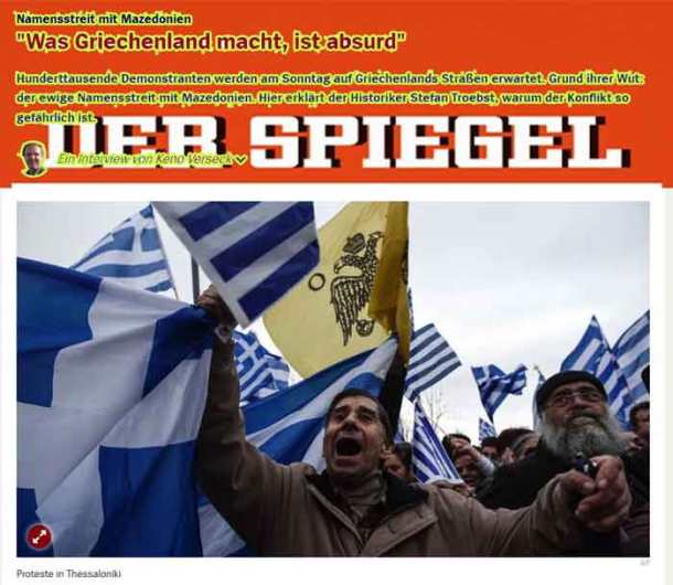 Δριμεία κριτική ασκείται στην Ελλάδα με αφορμή το μεγαλειώδες συλλαλητήριο στην Αθήνα για το «Μακεδονικό» σε δημοσίευμα του γερμανικού περιοδικού «Der Spiegel».