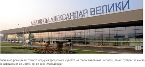 «Χιονοστιβάδα αντιδράσεων στα ελληνικά μέσα ενημέρωσης, προκάλεσε η δήλωση του Δημάρχου Θεσσαλονίκης Γιάννη Μπουτάρη για το όνομα του αεροδρομίου της Θεσσαλονίκης με την ονομασία «Μακεδονία», γράφει το σλαβικό δημοσίευμα των Σκοπίων, παρουσιάζοντας την …επίθεση των ονομάτων.