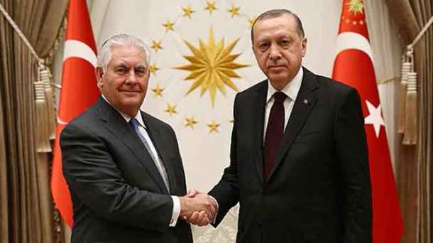 Την ίδια ώρα που ο Αμερικανός υπουργός Εξωτερικών συναντιόνταν με τον Ερντογάν στην Άγκυρα, σε μια συνάντηση κεκλεισμένων των θυρών επί τρεισήμισι ώρες χωρίς να υπάρξει καμία ανακοίνωση, τα τουρκικά ΜΜΕ πετούσαν αιχμηρό «καρφί» στις ΗΠΑ ότι Αμερικανοί δίνουν πληροφορίες στους Κούρδους για τις θέσεις των τουρκικών δυνάμεων με συνέπεια οι Κούρδοι να χτυπούν διάνα και να τους προκαλούν μεγάλες απώλειες.