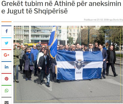 «Χιλιάδες Έλληνες, οργανωμένοι από τις ελληνόφωνες ενώσεις της Αλβανίας που υποστηρίζονται από το ελληνικό ναζιστικό κόμμα Χρυσή Αυγή, πέρασαν μπροστά από το Κοινοβούλιο της Ελλάδας ζητώντας την απόσχιση της νότιας Αλβανίας ή την Αυτονομία της Βορείου Ηπείρου», γράφει το αλβανικό δημοσίευμα.