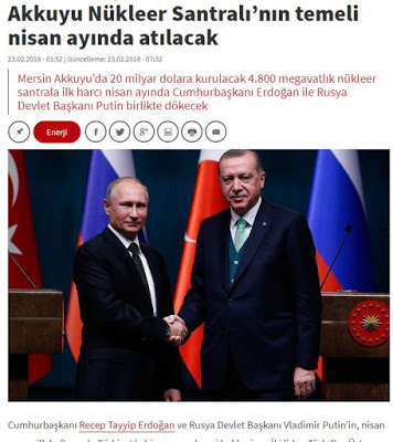 Τον Απρίλιο του 2018, οι πρόεδροι της Ρωσίας και της Τουρκίας, Βλαντίμιρ Πούτιν και Ρετζέπ Ταγίπ Ερντογάν θα ρίξουν το πρώτο σκυρόδεμα στη βάση του πυρηνικού σταθμού Ακούγιου.