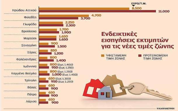 Στελέχη του υπουργείου αναφέρουν ότι εάν υιοθετηθούν οι τιμές των εισηγητών από την πολιτική ηγεσία του υπουργείου και εφαρμοσθούν χωρίς καμία άλλη τροποποίηση, θα προκύψουν επιβαρύνσεις στον ΕΝΦΙΑ σε αρκετές περιοχές που η τιμή ζώνης σήμερα είναι στα όρια των 750 ευρώ το τετραγωνικό μέτρο και μειώσεις σε άλλες περιοχές που η τιμή ζώνης κυμαίνεται μεταξύ 2.500 ευρώ και 4.000 ευρώ το τετραγωνικό μέτρο.