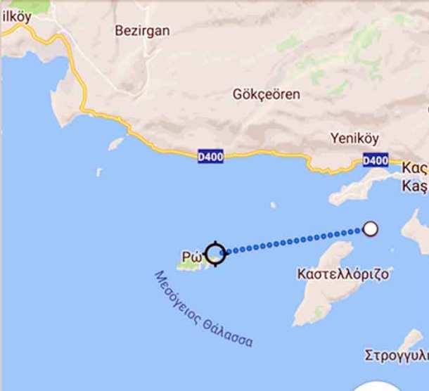 Την ίδια στιγμή, έχουμε απίστευτα ψεύδη από τους Τούρκους για το περιστατικό στη Ρω! Η Άγκυρα προσπαθεί να “χτίσει θέση” για την πρόκληση λέγοντας ότι το ελικόπτερο πετούσε μεταξύ ΚΑΣ και Μεγίστης! Δηλαδή, σύμφωνα με τα τουρκικά ΜΜΕ μπορεί να πετούσε και εντός τουρκικού εναέριου χώρου και να δέχθηκε πυρά από την Ρω. Η απόσταση όπως φαίνεται στο χάρτη είναι πολύ μεγάλη! Είναι βέβαιο ότι τα πυρά των τυφεκίων δεν μπορεί να… πέρασαν πάνω από το Καστελόριζο.