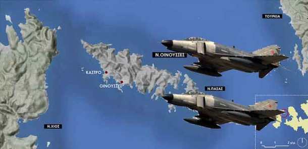 Όπως έγινε γνωστό από το ΓΕΕΘΑ, ένα ζεύγος τουρκικών F-4 εισήλθε στο FIR Αθηνών χωρίς να καταθέσει σχέδιο πτήσης στις 14:50 και ένα λεπτό αργότερα πέταξε πάνω από την Παναγιά και στη συνέχεια πάνω από τις Οινούσσες στα 12.500 πόδια και εξήλθε του FIR Αθηνών.