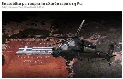 «Στις 22.28 αρχιφύλακας του φυλακίου στη Ρω αντιλήφθηκε θόρυβο ερχόμενο από ανατολικά προς τα δυτικά και, αφού ενημέρωσε, πήρε εντολή να ρίξει προειδοποιητικά τροχιοδεικτικά πυρά σε ασφαλή κατεύθυνση. Αφού έριξε για μερικά λεπτά, το ελικόπτερο αποχώρησε».