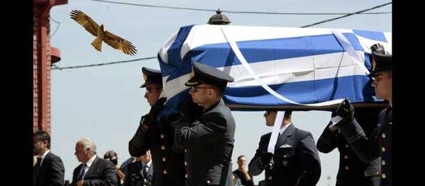 Την ώρα που το σφραγιστό φέρετρο με τη σορό του Σμηναγού κατέβαινε στον τάφο και μετά την απόδοση των προβλεπόμενων τιμών από το άγημα της ΠΑ, η μπάντα της 1ης Στρατιάς άρχισε να παιανίζει τον Εθνικό Ύμνο.