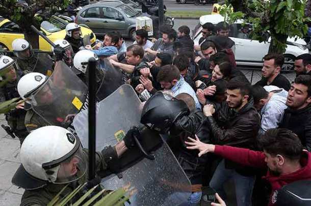 Σύμφωνα με πληροφορίες, οι διαδηλωτές πραγματοποιούσαν πορεία προς την Αμερικανική Πρεσβεία και στο ύψος του υπουργείου Εξωτερικών πέταξαν αυγά στις κλούβες των ΜΑΤ που βρίσκονταν στο σημείο.