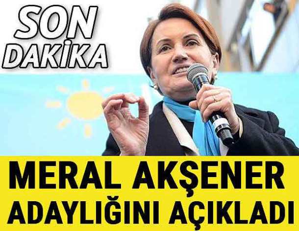 Η Μεραλ Ακσενέρ, πρώην υπουργός της Τσιλέρ, πρώην πρόεδρος της βουλής και πρώην βουλευτίνα του εθνικιστικού κόμματος από το οποίο απεχώρησε όταν ο Ντεβλέτ Μπαχτσελί τα «έφτιαξε» με τον Ερντογάν ιδρύοντας δικό της κόμμα, ανακοίνωσε και επίσημα ότι θα είναι διεκδικήτρια της τουρκικής προεδρίας στις εκλογές του Ιουνίου.