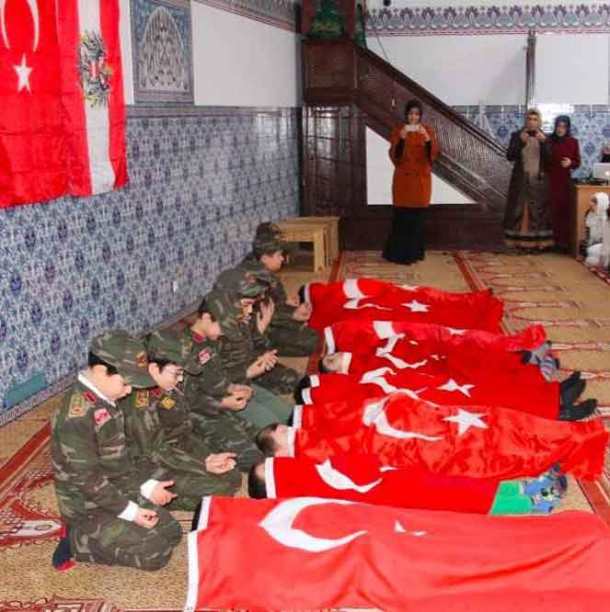 Παιδιά “μάρτυρες”! Η Τουρκία τα μαθαίνει να πεθαίνουν σ΄ όλη την Ευρώπη! Φωτογραφίες Posted on 19 Απριλίου, 2018 by Μιλήσιος Σχολιάστε Το κόμμα του Ταγίπ Ερντογάν , το AKP προετοιμάζει τα παιδιά για πόλεμο! Τα προετοιμάζει για να γίνουν “μάρτυρες”. Όχι μόνο μέσα στην Τουρκία, αλλά και στο εξωτερικό! Οι φωτογραφίες είναι από την Αυστρία! Μικρά παιδιά φορούν στρατιωτικές στολές σε τζαμί και “παίζουν” τους “μάρτυρες” τυλιγμένα με τουρκικές σημαίες. Αυτή είναι η Τουρκία του Ταγίπ Ερντογάν με τον οποίο συζητούν οι Ευρωπαίοι… πηγη Κοινοποιήστε:Tweet Κλικ για αποστολή ενός συνδέσμου μέσω email σε έναν/μία φίλο/η(Ανοίγει σε νέο παράθυρο) Email Κλικ για εκτύπωση(Ανοίγει σε νέο παράθυρο) Εκτύπωση Μου αρέσει! Φόρτωση... Σχετικά