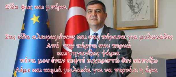 Νέα προκλητική δήλωση έκανε πριν λίγο ο Τούρκος Πρέσβης στην ΕΕ, Faruk Kaymakcı ο οποίος είπε ότι η «Η Τουρκία δεν θα επιτρέψει στην Ελλάδα να επεκταθεί στο Αιγαίο η οποία προακαλεί διεκδικώντας την ιδιοκτησία νησιών»!