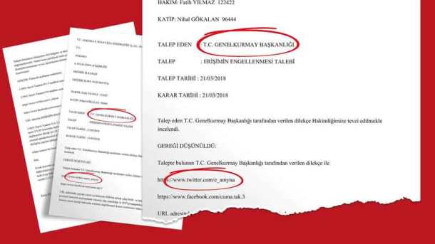 Στις 21 Μαρτίου 2018 εκδόθηκε η υπ΄ αριθμ. 2018/2443 απόφαση του 4ου Πρωτοβάθμιου Δικαστηρίου της Άγκυρας, μετά από σχετικό αίτημα του τουρκικού Γενικού Επιτελείου, με την οποία ζητείται η επιβολή λογοκρισίας στο λογαριασμό Τwitter της ιστοσελίδας e-Amyna.com με πρόσχημα τη δημοσιογραφική καταγραφή των απωλειών του τουρκικού στρατιωτικού προσωπικού κατά την διάρκεια της Επιχείρησης ΚΛΑΔΟΣ ΕΛΑΙΑΣ στην Συρία.