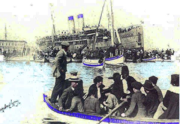 Χιλιάδες μάτια δακρυσμένα βλέπουν τα πλοία να πλησιάζουν. Καθαρά φαίνονται οι τσολιάδες. Νά και η πολεμική ελληνική σημαία, όλος ο κόσμος μαζί με τον Χρυσόστομο ψέλνουν: «Τη Υπερμάχω Στρατηγώ τα νικητήρια». Τι συγκινητική στιγμή, χιλιάδες μάτια δακρυσμένα βλέπουν για πρώτη φορά ευζώνους και την ένδοξη πολεμική ελληνική σημαία.