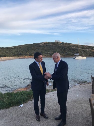 Ο υπουργός Εξωτερικών Νίκολα Ντιμίτροφ συναντήθηκε σήμερα στο Σούνιο με τον πρώην πρωθυπουργό της Ελλάδας και νυν αρχηγό του Κινήματος Δημοκρατών Σοσιαλιστών και της Σοσιαλιστικής Διεθνούς, Γιώργο Παπανδρέου.