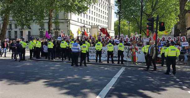 Des manifestants contre l’arrivée du Président Turc #Erdogan au Numéro 10 Downing Street pour rencontrer la PM Britannique #TheresaMay. #Turquie#UK