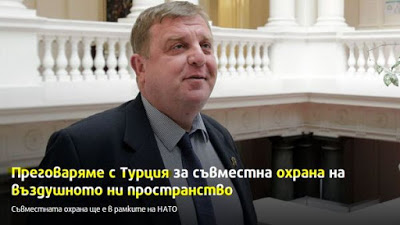 Το υπουργείο Άμυνας διαπραγματεύεται με την Τουρκία για την κοινή ασφάλεια του βουλγαρικού εναέριου χώρου. Η κοινή ασφάλεια θα είναι στο πλαίσιο του ΝΑΤΟ.