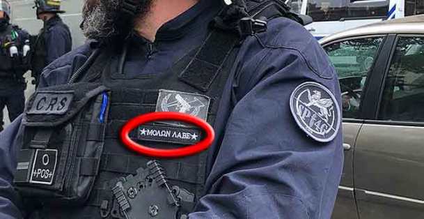Πιο συγκεκριμένα, ο Γάλλος αστυνομικός των CRS (σώμα αντίστοιχο με τα ΜΑΤ) εμφανίστηκε σε διάφορες φωτογραφίες με το απόφθεγμα του Λεωνίδα ραμμένο στην στολή του, πράγμα που απαγορεύεται από την γαλλική νομοθεσία, καθώς εμπίπτει στην απαγορεύση διάδοσης μηνυμάτων με πολιτικό περιεχόμενο.