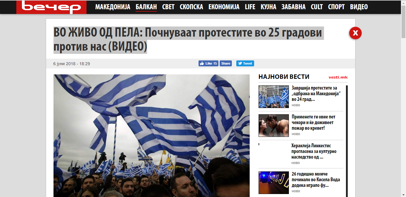 Την ίδια στιγμή, τα μεγάλα συλλαλητήρια καλύφθηκαν εκτενώς και από ΜΜΕ των Σκοπίων, μάλιστα ένα από αυτά, το vecer.mk είναι αρκετα θορυβημένο, καθώς γράφει στον τίτλο του: Συγκεντρώσεις σε ελληνικές πόλεις εναντίον μας.