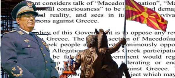 Οπως σημειώνεται στο κείμενο του ελληνικού υπουργείου Εξωτερικών αναφορικά με το «μακεδονικό έθνος», που αποτελεί την επιτομή του αλυτρωτισμού των Σκοπιανών, «η Πρώην Γιουγκοσλαβική Δημοκρατία της Μακεδονίας ανακήρυξε την ανεξαρτησία της το 1991, βασίζοντας την ύπαρξη της ως ανεξάρτητο κράτος στην τεχνητή και ψευδεπίγραφη έννοια του «μακεδονικού έθνους», η οποία καλλιεργήθηκε συστηματικά μέσω της πλαστογράφησης της ιστορίας και της καπηλείας της αρχαίας Μακεδονίας, για λόγους καθαρής πολιτικής σκοπιμότητας».