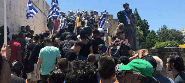 Αρκετοί από τους διαμαρτυρόμενους ανέβηκαν στις σκάλες με αποτέλεσμα να ακολουθήσει ένταση με τους αστυνομικούς.