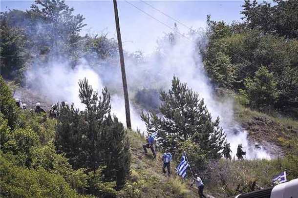 Σφοδρές συγκρούσεις μεταξύ των »κυβερνητικών» ΜΑΤ και διαδηλωτών στο Πισοδέρι Φλώρινας.
