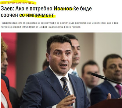 Στη συνέντευξη, ο Ζόραν Ζάεφ ανέφερε ότι το αποτέλεσμα του δημοψηφίσματος για τη συμφωνία με την Ελλάδα θα είναι υποχρεωτικό είτε αυτό είναι συμβουλευτικό είτε δεσμευτικό. ( Σημ. Τακτική Τσίπρα πριν το δημοψήφισμα του 2015).