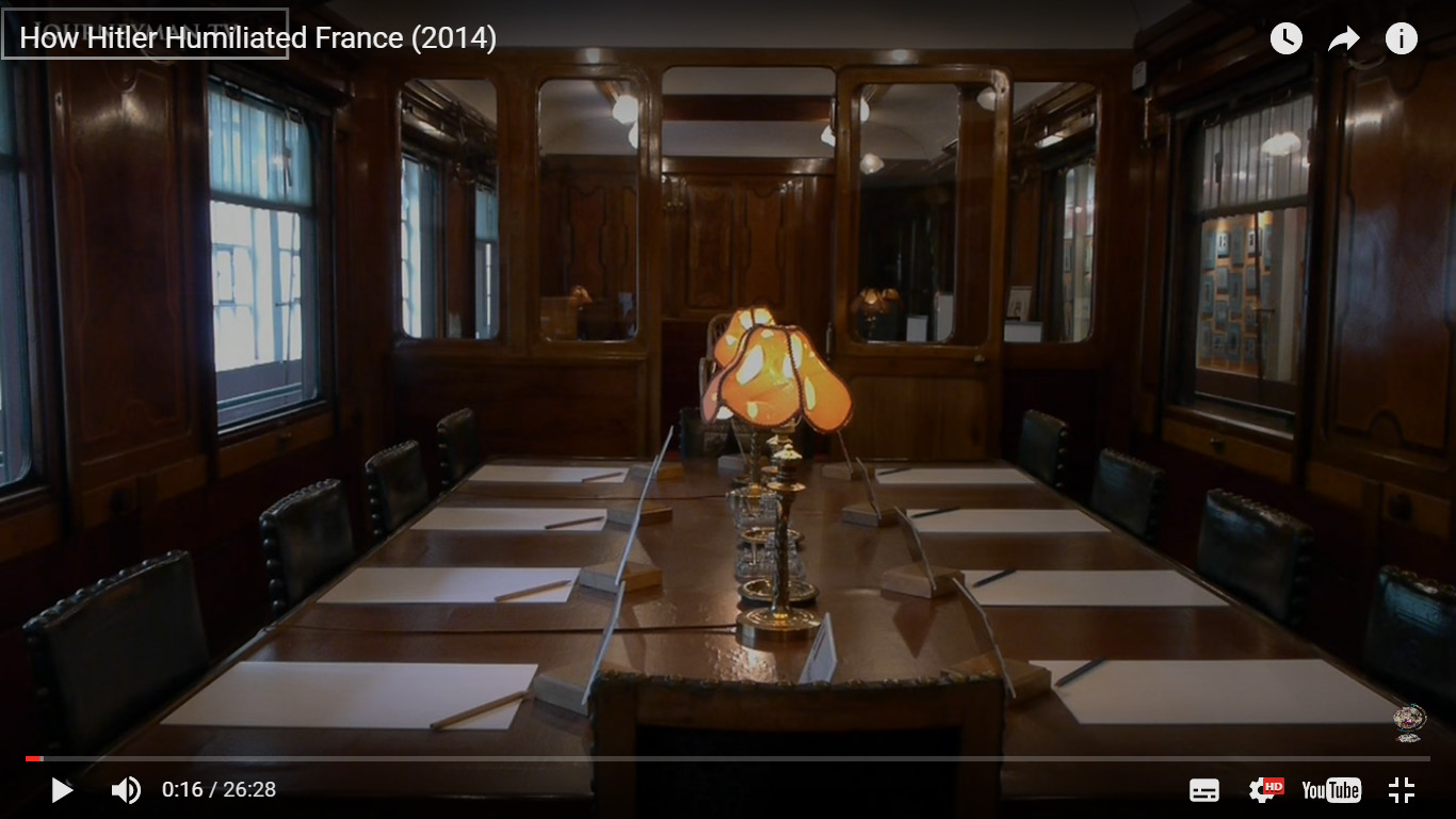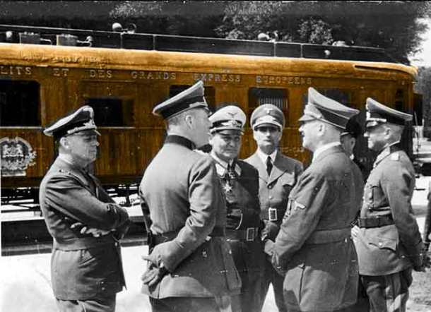Στο βαγόνι όπου υπέγραψαν την συνθηκολόγηση οι Γερμανοί το 1918 από την ήττα τους κατά τον Α! Παγκόσμιο Πόλεμο, εκεί ακριβώς μέσα στο ίδιο βαγόνι έφερνε τους Ευρωπαίους ηγέτες που κατέκτησε τις χώρες τους ο Χίτλερ ώστε να τους εξευτελίσει και να τους μειώσει βάζοντας τους να υπογράψουν την ήττα τους και την υποταγή τους στην Γερμανία.