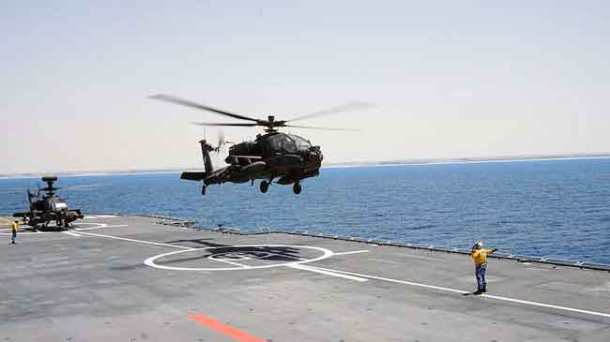 Στο ελικοπτεροφόρο Mistral της Αιγύπτου προσνηώθηκαν ελικόπερα Apache της ελληνικής Αεροπορίας Στρατού.