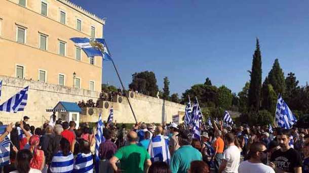Σε εξέλιξη βρίσκεται η συγκέντρωση για τη Μακεδονία στο Σύνταγμα. Περίπου 300 άτομα βρίσκονται αυτή τη στιγμή μπροστά από το μνημείο του Άγνωστου Στρατιώτη, κρατούν ελληνικές σημαίες και εκφράζουν την αντίθεσή τους στην συμφωνία των Πρεσπών.