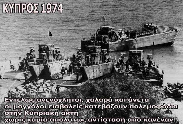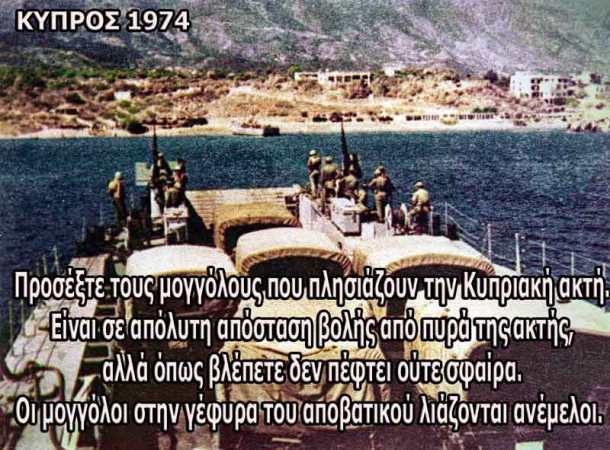Ξύπνησα γύρω στις 4.30 π.μ. της 20ής του Ιούλη. Περισσότερο από έγνοια, που πλησίαζε τη βεβαιότητα, ανέβηκα στην κληματαριά και κοίταξα κατά τη θάλασσα. Είδα ευδιάκριτα τρία πλοία που κινούνταν προς την ακτή. Δεν μπορώ να πω ότι υπό άλλες συνθήκες θα αντιλαμβανόμουν ότι ήταν στρατιωτικά, όμως εκείνη τη στιγμή, ύστερα από το πραξικόπημα της Δευτέρας και τις ειδήσεις της Παρασκευής, καμιά αμφιβολία δε μου έμενε ότι ήταν τούρκικα.