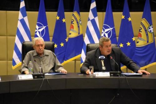 Συνέντευξη τύπου παραχώρησε ο ΥΠΑΜ Πάνος Καμμένος με αφορμή τις τελευταίες εξελίξεις στο θέμα των φονικών πυρκαγιών και με σκοπό την ενημέρωση όσον αφορά με τις δραστηριότητες των Ενόπλων Δυνάμεων και του Υπουργείου Εθνικής Άμυνας για την καταπολέμηση των συνεπειών των καταστρεπτικών πυρκαγιών.