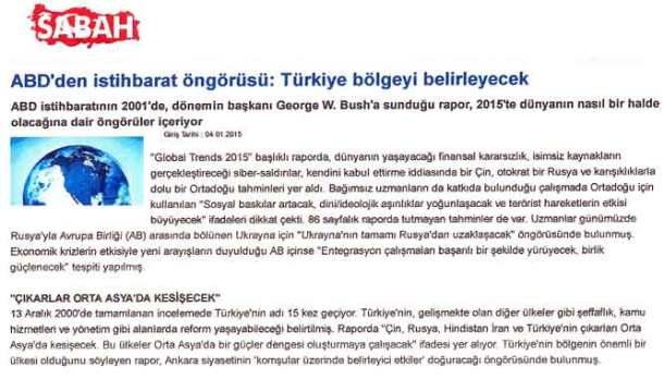 Από το 2001 και επί προεδρίας του George W Bush, η αμερικανική υπηρεσία πληροφοριών, η γνώστη παγκοσμίως CIA, είχε καταστρώσει σχέδια που πρόβλεπαν για τα επόμενα χρόνια την πρόκληση κρίσεων με κύριο στόχο την διάσπαση των χωρών Ρωσίας, Κίνας, Ινδίας, Ιράν αλλά και Τουρκίας. Αυτά αποκαλύφθηκαν σε ετήσια αναφορά του Global Trends η οποία αναδημοσιεύτηκε και στον τουρκικό τύπο ένεκα του μεγάλου τουρκικού ενδιαφέροντος καθώς οι προβλεπόμενοι σχεδιασμοί της CIA, αναφέρονταν και σε επικείμενη διάσπαση της Τουρκίας.