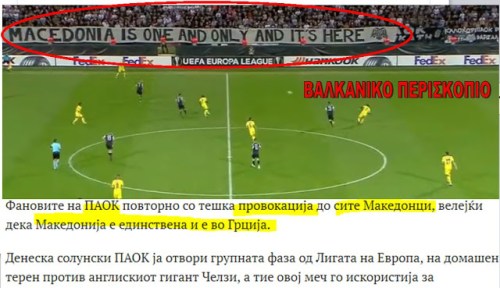 «Οι οπαδοί του ΠΑΟΚ, ξανά με μια σοβαρή πρόκληση προς όλους τους ‘Μακεδόνες’, λένε ότι η Μακεδονία είναι μία και μοναδική και βρίσκεται στην Ελλάδα», γράφει το σλαβικό δημοσίευμα και συνεχίζει: