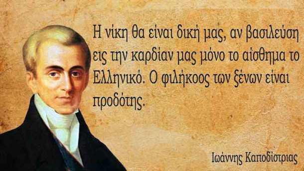 Τον έφαγαν τα μνημόνια κι αυτόν). Τολμούσε κάποτε ο εν λόγω «Οργανισμός», να εκδίδει και κάποιο βιβλίο εθνικού περιεχομένου, για να συμβάλλει στην ιστορική παιδαγωγία μαθητών και δασκάλων. Αφότου αλώθηκε από την νεοταξική γλίτσα και η λέξη «εθνικός» ποινικοποιήθηκε και βλέπουν το φως της δημοσιότητας κουρελουργήματα τύπου Ρεπούση, βιβλία γλώσσας που μορφώνουν τους Ελληνόπαιδες με συνταγές για επιτυχημένα «μακαρόνια με κιμά» ή Θρησκευτικά, μεταλλεία βλασφημίας και αιρέσεων. Ερανίζομαι από το θαυμάσιο αυτό τευχίδιο κάποια κείμενα του Καποδίστρια, που επιβεβαιώνουν το γιατί η πρόωρη απώλειά του υπήρξε πράγματι συμφορά για τους Έλληνες.