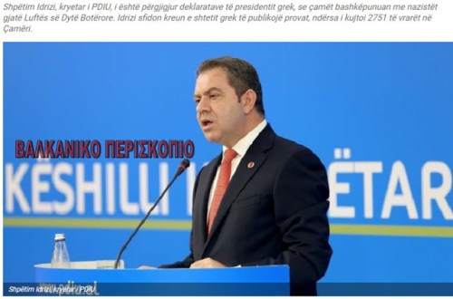 Ο πρόεδρος του κόμματος των Αλβανοτσάμηδων – PDIU, Σφετίμ Ιντρίζι, απάντησε στις δηλώσεις του προέδρου της Ελλάδας, Προκόπη Παυλόπουλου, για τους τσάμηδες που συνεργάσθηκαν με τους Ναζί κατά τη διάρκεια του Β’ Παγκοσμίου Πολέμου.
