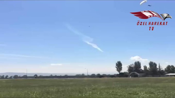 Την ίδια στιγμή τουρκική μονάδα αλεξιπτωτιστών εκτελεί ρίψεις, ενώ επίλεκτα μέλη της εκτελούν ελεύθερο άλμα το οποίο δημοσιοποιείται στο Twitter.