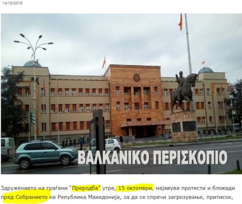 Η ένωση πολιτών «Πρέροντβα» (αναγέννηση) ανακοίνωσε για σήμερα διαμαρτυρίες και αποκλεισμούς οδών μπροστά από το Κοινοβούλιο, ως συνέχεια της ‘μακεδονικής’ αντίστασης, όπως είπαν.