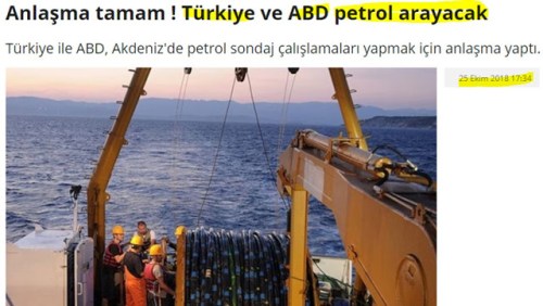 «Στην ανατολική Μεσόγειο για το οικόπεδο 1 (Alanya-1) έχει υπογραφεί σύμβαση με την TPAO ύψους 15 εκατομμυρίων δολαρίων», όπως σημειώνεται.