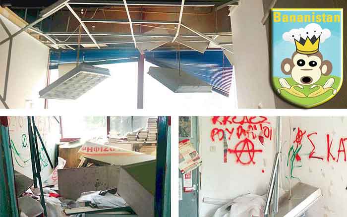 3110-thumb-large Published 31 Οκτωβρίου, 2018 at 700 × 438 in Γυαλιά-καρφιά στο Πάντειο – Κουκουλοφόροι προκάλεσαν εκτεταμένες καταστροφές