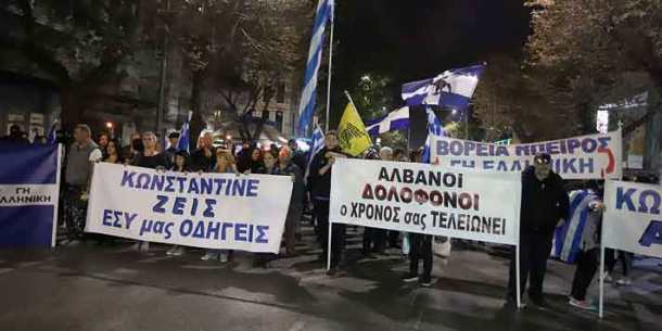 Οι συμμετέχοντες στην πορεία για τον Κατσίφα, κρατώντας ελληνικές σημαίες, δάδες και πανό, επιχείρησαν να κινηθούν προς το προξενείο της Αλβανίας, που βρίσκεται στην Τσιμισκή (και σε μικρή απόσταση από τη δεύτερη συγκέντρωση), αλλά συνάντησαν φραγμό με κλούβες της Αστυνομίας, στη συμβολή των οδών Τσιμισκή και Ιων. Δραγούμη.