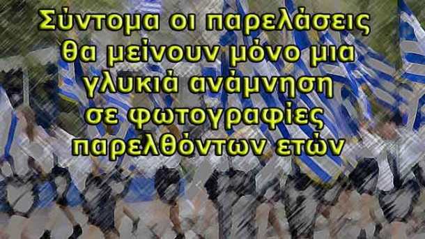 Όπως αναφέρουν πληροφορίες του notioanatolika.gr μαθητές του 1ου και του 2ου ΓΕΛ Γέρακα ζήτησαν να παρελάσουν τραγουδώντας το γνωστό τραγούδι “Μακεδονία ξακουστή”, κάτι που οι καθηγητές τους αρνήθηκαν, άγνωστο για ποιούς λόγους.